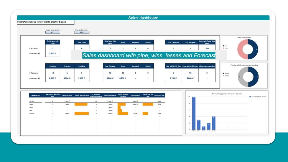 ✅ A general overview of your business with overall pipe, Forecast, wins and losses