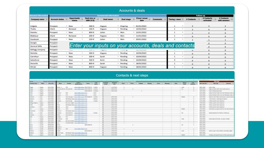 ✅ One sheet to enter the contacts associated with your accounts and put your next steps concerning their activation