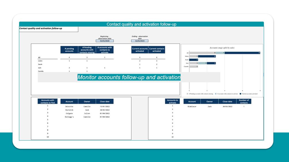 ✅ One sheet to help you follow the accounts that do not have contacts attached or accounts that are not activated